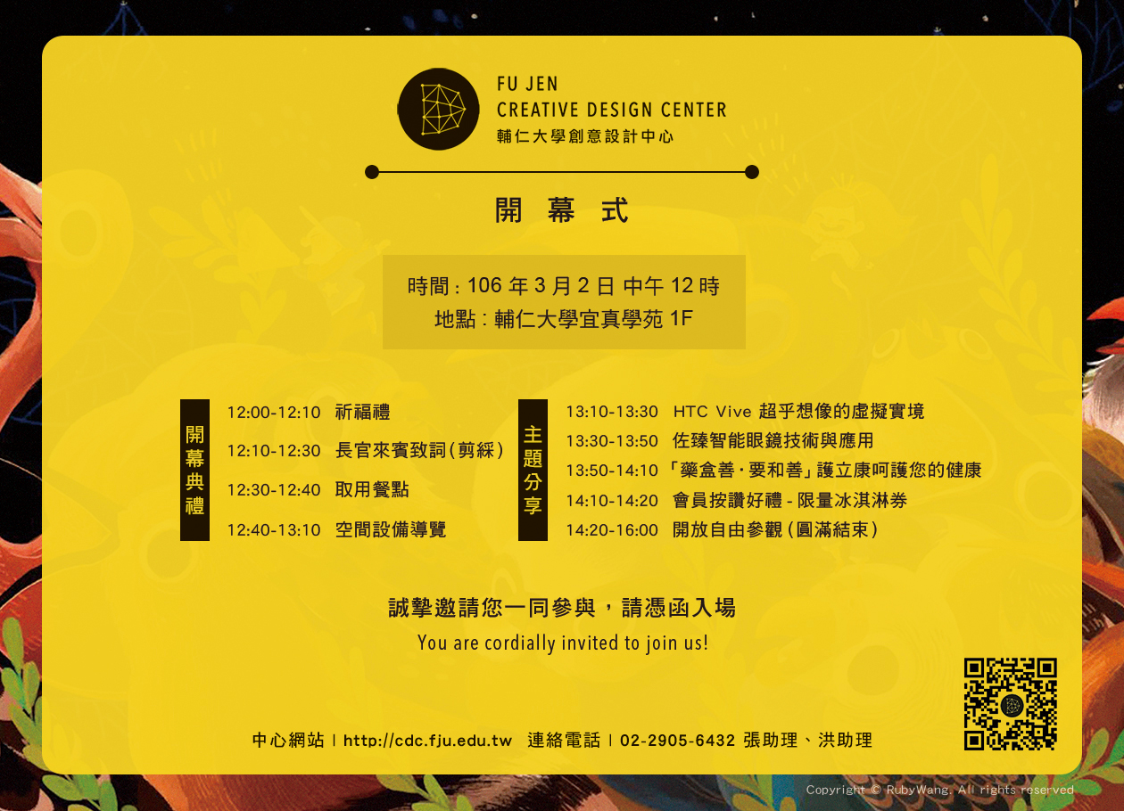 「輔大創意設計中心-開幕式」3/2(四)中午12時-宜真學苑1F